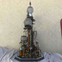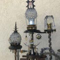 The Light Castle sculpture is a 4 light lamp powered by Pure Light Energy. As mentioned on my home page, Pure Light Energy is available to all who believe in The Lord of Light. This castle is equipped of course, with its own King and Queen. All inhabitants, guards and servants are all followers of The Lord of Lights. The crystal globe at the top of the castle is where Pure Light Energy is received and transformed into castle operations and defense. The Guards of the Light Switch are Shell Creatures, classic hybrids of creatures and machines. They defend the castle with Pure Light Energy Blaster staffs. Don’t mess with them. Keep in mind that this piece is first and foremost a fine-arts sculpture. It is also a unique functional lamp as well.